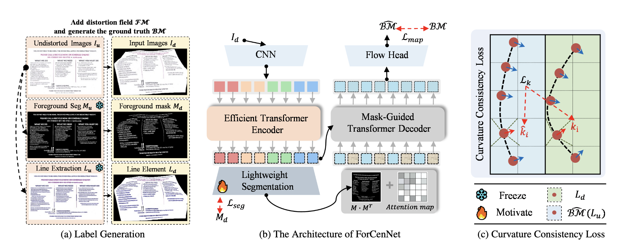 损失并不能保证还原后的文本行、表格线中不会存在 “上下波动的情况”,所以需要一个更全局的约束。文章对 distorted 空间中,每个 text-line 上采样点的曲率进行对齐,从而改善了这一问题。(这应该也是文章相较于其他 foreground-oriented 方法的改进点)